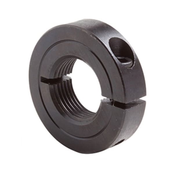 3/4-16 Bore Thread; Shaft Collar; Steel; 1-3/4 in. Outside Diameter; 1/2 in. Width; 1/4-28 X 5/8 Clamp Screw Size; One Piece Split Threaded Recessed Screw