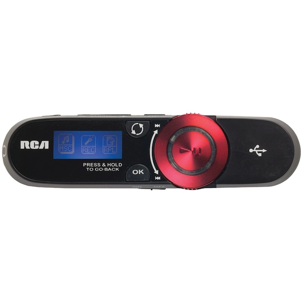 The RCA 4GB MP3 Player with USB combines smarts and flexibility. Its sleek thumbdrive-style design makes this model simple and functional. It has 4GB memory and holds up to 1,200 songs. It includes earbud headphones so you can instantly start listening right out of the box. The built-in rechargeable battery and removable sport clip are perfect for the active lifestyle. The integrated USB design also makes transferring files quick and easy.