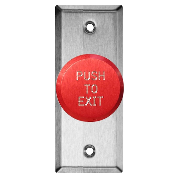 991 Series Narrow Pneumatic Time Delay Pushbutton, Red Button, 2 to 45 Second Delay, Push to Exit, Brushed Stainless Steel Finish