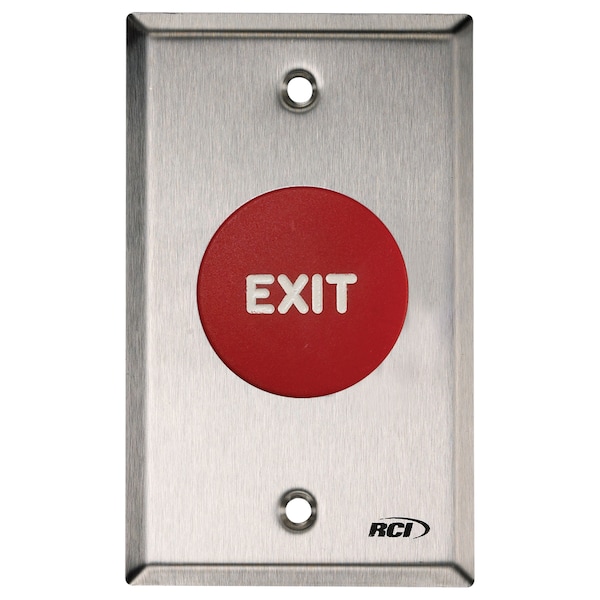 RCI 908 Series Single Gang Mount Exit Red Pushbutton, Stainless Steel Finish