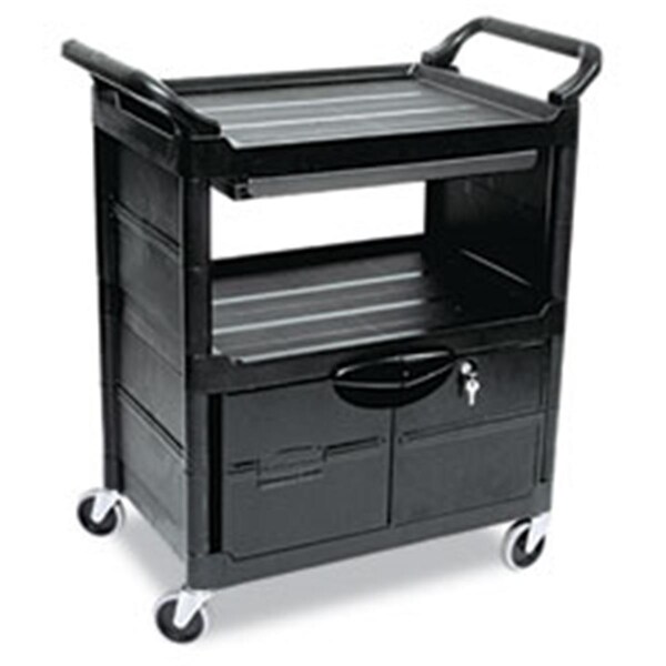Utility Cart W/Locking Doors 2-Shelf 33-5/8W X 18-5/8D X 37-3/4H Black