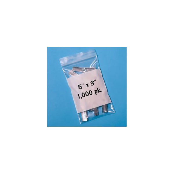 Reclosable Poly Bags W/ Write On Label, 3"W x 5"L, 2 Mil, Clear, 1000/Pack