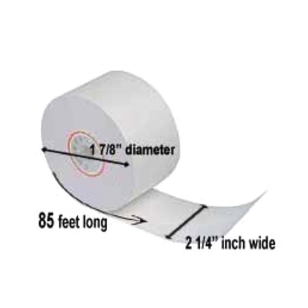 Thermal receipt paper; 2 1/4 in (W) x 85 ft (L); 1 7/8 in diameter roll; Single ply; Fits most credit card machines; Formally known as TH22; 50 rolls per case