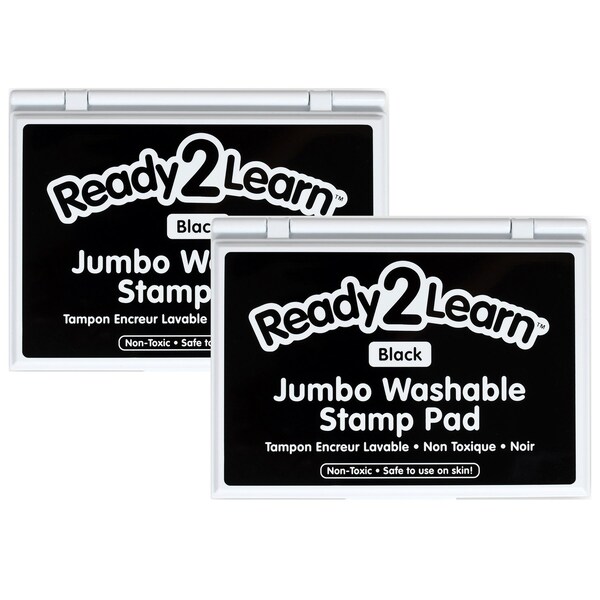 This large black stamp pad contains washable, non-toxic ink. Washable stamp pads offer a variety of creative possibilities with easy cleanup! The ink is safe for hand and finger stamping and washes off skin and most clothing with warm, soapy water. The quick-drying, fade-resistant ink is also acid-free for archival quality. The raised pad means there are no hard edges around the ink. Children can press down without hitting an edge, which provides more area for stamping. The black ink in this stamp pad presents crisp, vivid images when stamped. Stamping is a fun way to develop fine motor skills and foster creative expression. Each ink pad is packaged in a plastic case with a flip cover to prevent it from drying out. For ages 3+. Size of ink pad: 6.2"L x 4.1"W. Size of entire stamp pad with plastic casing: 6.7"L x 4.9"W x 0.75"H. Sold as a pack of 2 stamp pads.