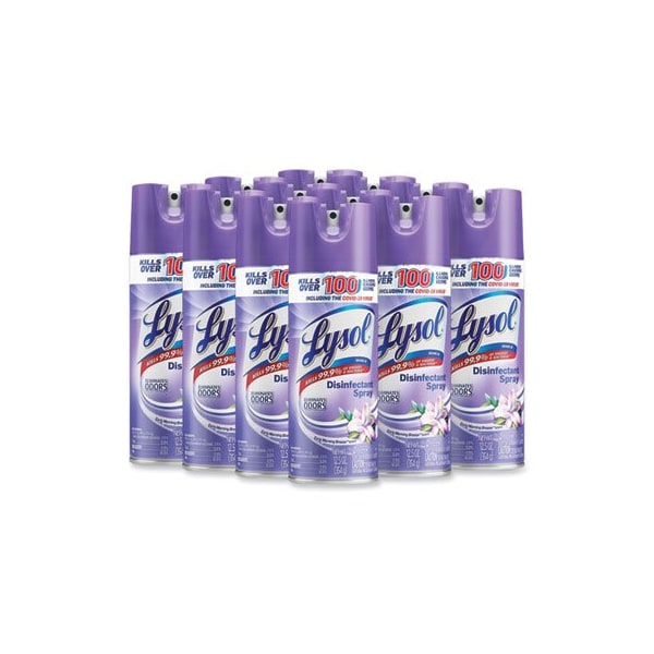 Get maximum versatility with minimal effort with Lysol Disinfectant Spray thats safe to use on hard and soft surfaces. Lysol kills 99.9% of viruses and bacteria, including the virus that causes COVID-19 in 15 seconds, as well as cold and flu viruses when used as directed. Help protect high-traffic areas and high-touch surfaces, including desks, bathrooms, doorknobs, and railings. Deliver hospital-type disinfection on to soft surfaces, including upholstery, curtains, sofas, mattresses, and cushions. Meet customer and staff expectations around disinfection. Simply spray and let air dry. Application: Disinfectant/Sanitizer; Applicable Material: Ceramics; Enamel; Fiberglass; Laminates; Metal; Plastic; Vinyl; Chemical Compound: Ethanol; Alkyl 50% C14, 40% C12, 10% C16 Dimethyl Benzyl Ammonium Saccharinate; Dirt Types: Bacteria; Fungus; Germs; Mildew; Mold; Viruses.