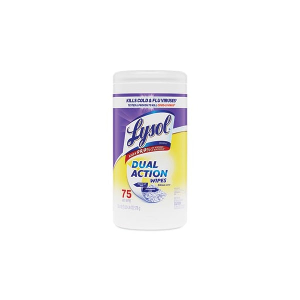 LYSOL, Dual Action Disinfecting Wipes, Citrus, 7 X 8, 75/canister
