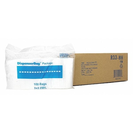 Reclosable Bag, Zip Seal, 4 in L, 4 in W, 2 mil Thick, Low Density Polyethylene (LDPE), Clear