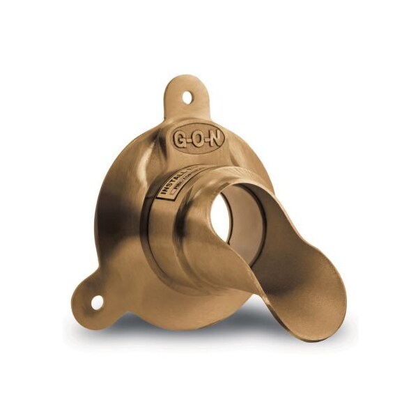 The G-O-N downspout nozzle is cast nickel brass construction, with a bonded, threaded & sealed PVC insert, allowing the nozzle to glue directly onto PVC pipe. Escutcheon is furnished in cast nickel-bronze with a security ring.