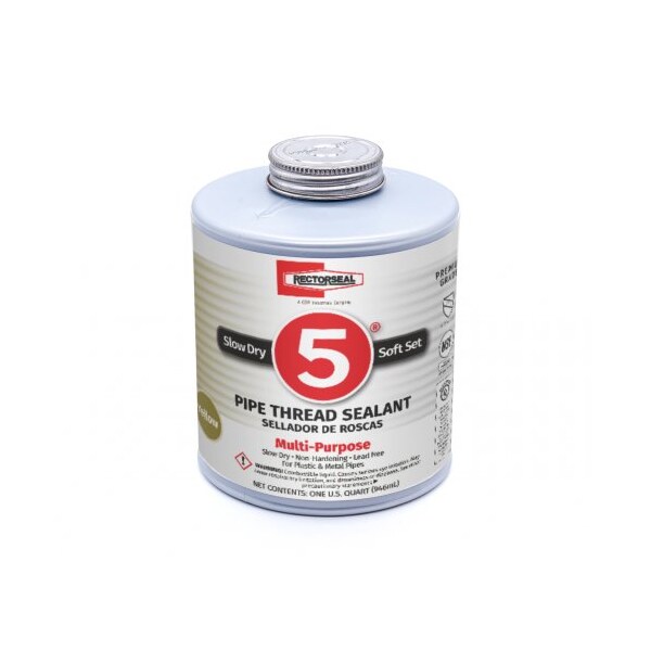 RectorSeal No. 5 pipe thread sealant is a soft-set, slow drying compound which seals, lubricates, and protects threaded pipe and fittings. It can be pressurized immediately.