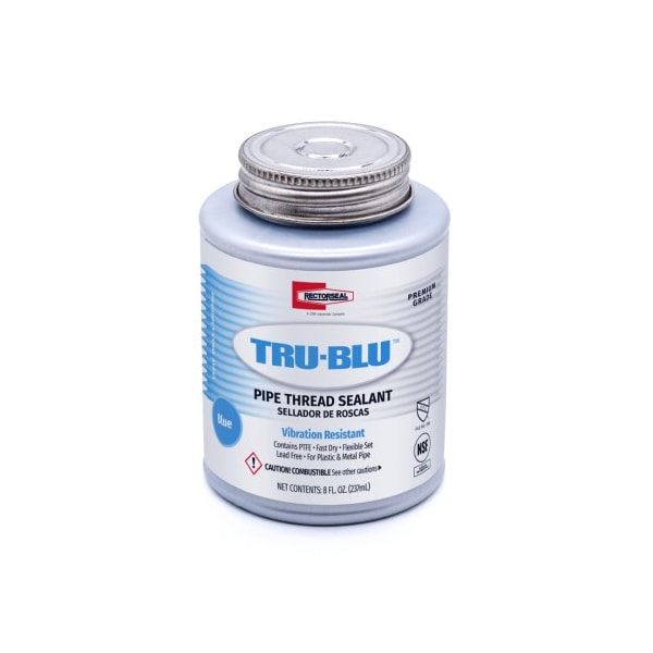 RectorSeal Tru-Blue pipe thread sealant with PTFE is a fast-dry, flexible set thread sealant designed for high vibration environments such as refrigeration and industrial applications.