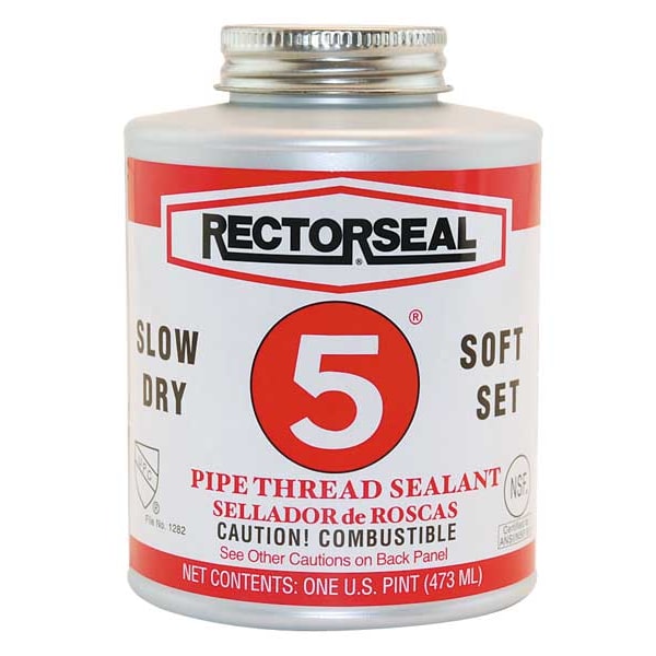 Pipe Thread Sealant, Cure Type Non-Hardening, Series No. 5, Container Size 16 oz, Container Type Brush-Top Can, Maximum Operating Temperature 400 Degrees F, Minimum Operating Temperature -50 Degrees F, Maximum Operating Pressure for Gases 2,600 psi, Maximum Operating Pressure for Liquids 12,000 psi, Color Yellow, For Fluid Type Air, Diesel Fuel Oil, Fuels, Kerosene, Petroleum Gas, Natural Gas, Propane, Steam, Water