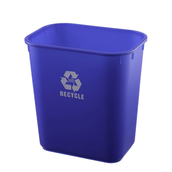 Essential Recycle 13 Qt. Rectangular Wastebasket with Rolled Rim and White We Recycle Imprint, Blue, 12/Pk