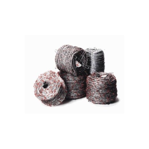 Ruthless barbed wire is designed with four sharp points for effective fencing The strong barbs resist bending and are attached to a twisted cable design The roll length is 1,320 ft made from 100 USA steel The wire is 125 gauge Class I 28 ozsq ft zinc coated