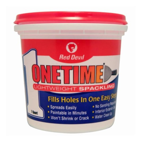 Pre-mixed formula for fast, professional repairs in one application. Use to fill nail holes, cracks and other holes in plaster, drywall, wood and stucco. Won't shrink crack or sag. No sanding required. Can be used on interior or exterior surfaces. Water clean-up.Onetime Light Weight Spackling, 1 qt Tub, Bright White, Paste