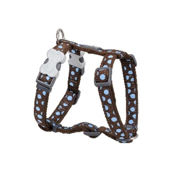Red Dingo DH-S2-BR-SM Dog Harness Design Blue Dots on Brown; Small (Discontinued)