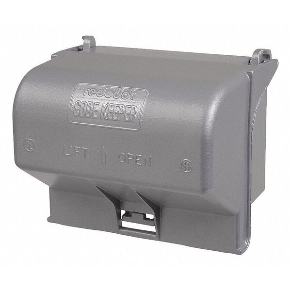 While In Use Weatherproof Cover, Body Material Die-Cast Aluminum, Mounting Orientation Horizontal, Receptacle Type Duplex, Decora/GFCI Receptacle, Toggle Switch and Single Receptacle, Depth 3 35/64 in, Number of Gangs 1, Width 5 7/64 in, Height 4 17/64 in, Features Extra-Duty, Padlockable, Color Gray, Standards UL, CSA, NEMA 3R, Includes Instruction Sheet, Adapter Plates, Gasket, and Mounting Hardware