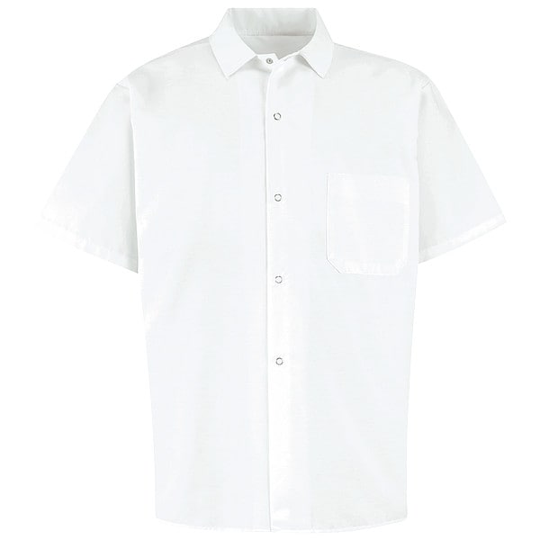 Kitchen Shirt, Sleeve Length Short Sleeve, Size L, Color White, Features Industrial Laundry Friendly, Fabric Blend 65 Percent Polyester/35 Percent Cotton, Number of Pockets 1, Gender Men's, Material Poplin, Closure Snap