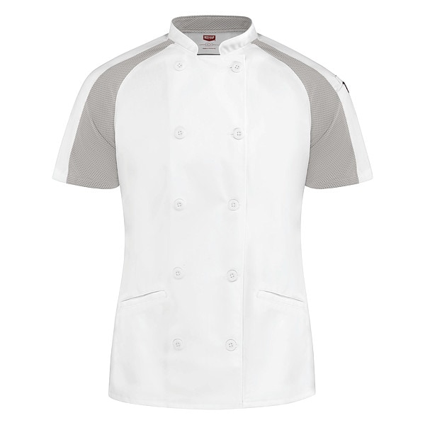 Chef Coat, Sleeve Length Short Sleeve, Size M, Resistance Properties Oil Resistant, Fabric Blend 100 Percent Polyester (Flex Panel); 65 Percent Polyester/35 Percent Cotton (Body), Color White, Closure Button, Material Polyester (Flex Panel); Polyester/Cotton (Body)