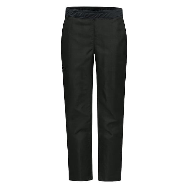 Chef Pant, Fabric Blend 77 Percent Polyester/23 Percent Cotton, Closure Elastic, Material Cotton/Polyester, Includes (2) Hip Pockets, Cell Phone Pocket, Features Perforated Stretch Panels, Wicking and Stain Release Fabric, Size L, Gender Women's, Color Black, Number of Pockets 3, Resistance Properties Stain Resistant, Inseam Length 30 1/2 in, Waist Size 35 in