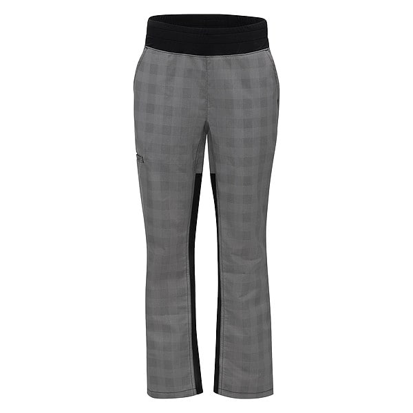 Chef Pant, Fabric Blend 77 Percent Polyester/23 Percent Cotton, Closure Elastic, Material Cotton/Polyester, Includes (2) Hip Pockets, Cell Phone Pocket, Features Perforated Stretch Panels, Wicking and Stain Release Fabric, Size L, Gender Women's, Color Black Plaid/Gray, Number of Pockets 3, Resistance Properties Stain Resistant, Inseam Length 30 1/2 in, Waist Size 35 in