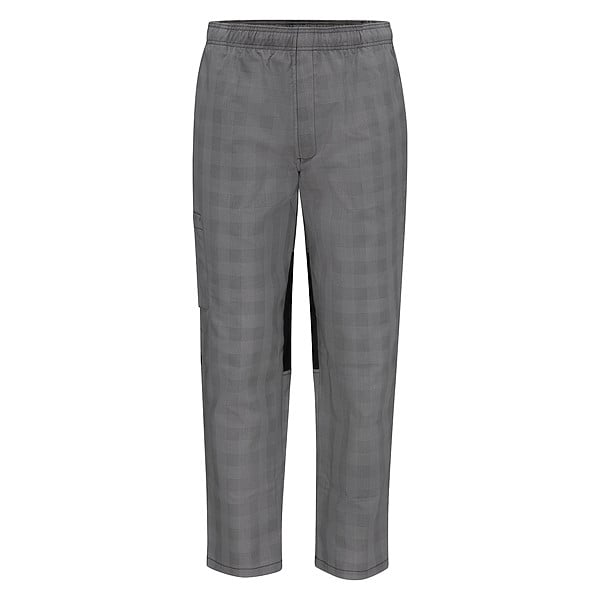 Chef Pant, Fabric Blend 77 Percent Polyester/23 Percent Cotton, Closure Drawstring; Zipper, Material Cotton/Polyester, Includes (2) Back Patch Pockets, (2) Front Pockets, Cell Phone Pocket, Features Slight Tapering through the Thigh, Moisture Wicking, Perforated Stretch Panels, Soil Releasing Fabric, Size M, Gender Men's, Color Black Plaid/Gray, Number of Pockets 5, Resistance Properties Stain Resistant, Inseam Length 31 in, Waist Size 36 in