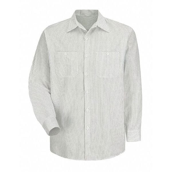 Mens Ls Wht/Grn Str Work Shirt,XXL