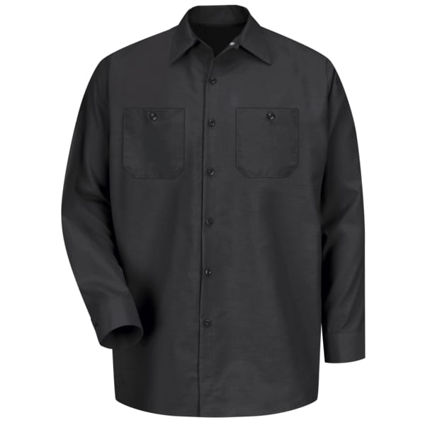 Men's Long Sleeve Industrial Work Shirt, Cotton/Polyester, Button Fronts, 2 Pocket(s), Black, L
