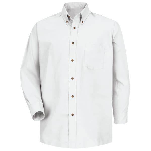Men's Mns Ls Button Down Poplin Shirt-Wh, M, Cotton/Polyester, Button Fronts, 1 Pocket(s), White, M