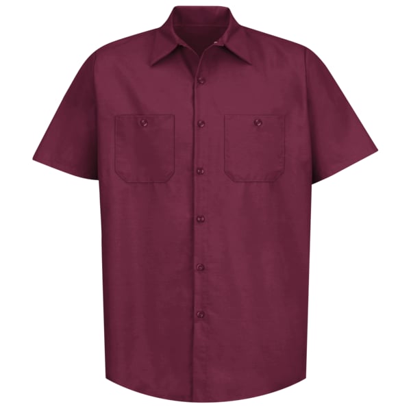 Mens Ss Burgundy Poplin Work Shirt,S, Gender Men's, Style Work Shirt, Material Cotton/Polyester, Fabric Weight 4.5 oz/sq yd, Front Closure Type Buttons, Number of Outside Pockets 2, Fit Regular Fit, Color Burgundy, Sleeve Type Short, Sleeve Length 10 in, Size S, Minimum Neck Size 13 5/8 in, Maximum Neck Size 14 1/2 in, Maximum Chest Size 38 in, Minimum Chest Size 34 1/2 in, Length 31 3/4 in, Size-Body Type Regular, Application Industrial