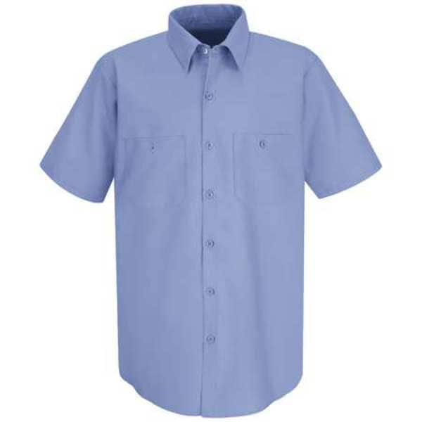Men's Short Sleeve Industrial Work Shirt, Cotton/Polyester, Button, 2 Front Pocket(s), Light Blue