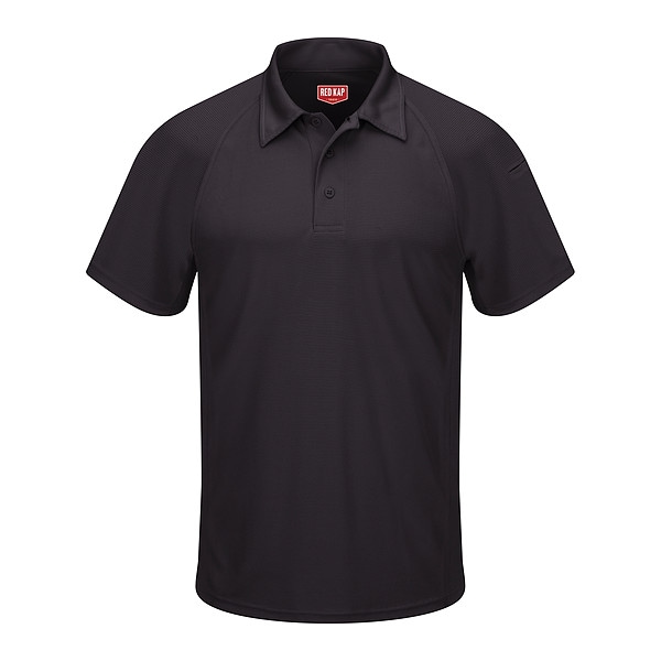 Short Sleeve Polo, Gender Men's, Style Polo, Material Polyester, Fabric Weight 5.3 oz/sq yd, Front Closure Type Buttons, Number of Outside Pockets 2, Fit Relaxed Fit, Color Black, Sleeve Type Short, Sleeve Length 16 5/8 in, Size S, Maximum Neck Size 16 1/2 in, Maximum Chest Size 38 in, Minimum Chest Size 35 in, Length Regular, Size-Body Type Regular, Cleaning and Care Instructions Home Wash, Industrial Laundry: Heavy Soil, Industrial Laundry: Light Soil, Collar Style Self-Fabric Convertible
