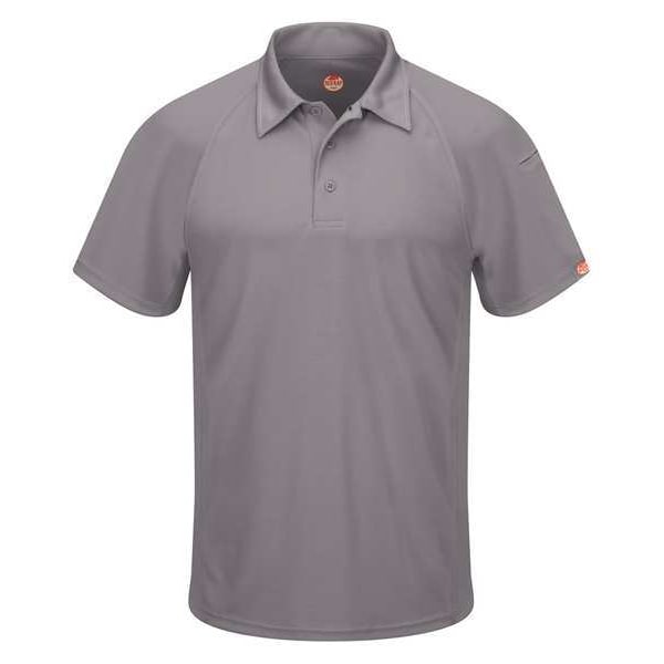 Men's Short Sleeve Polo, Polyester, Button, 2 Pocket(s), Gray, M