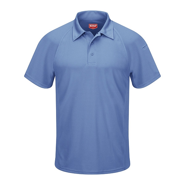 Short Sleeve Polo, Gender Men's, Style Polo, Material Polyester, Fabric Weight 5.3 oz/sq yd, Front Closure Type Buttons, Number of Outside Pockets 2, Fit Relaxed Fit, Color Medium Blue, Sleeve Type Short, Sleeve Length 18 in, Size M, Maximum Neck Size 17 1/2 in, Maximum Chest Size 41 in, Minimum Chest Size 38 in, Length Regular, Size-Body Type Regular, Cleaning and Care Instructions Home Wash, Industrial Laundry: Heavy Soil, Industrial Laundry: Light Soil, Collar Style Self-Fabric Convertible