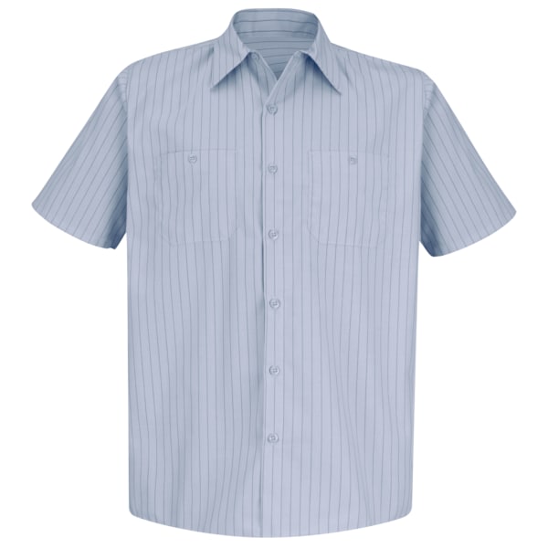 Men's Short Sleeve Striped Work Shirt, 65% Polyester/35% Cotton, Button Fronts, Light Blue/Navy, L