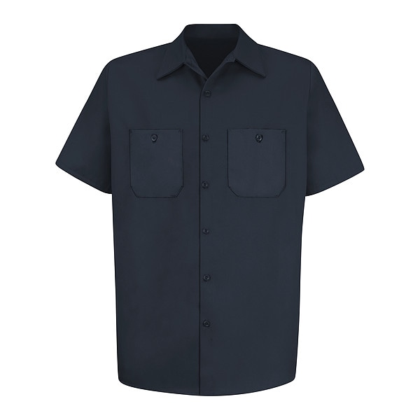 Men's Short Sleeve Work Shirt, Cotton, Button Fronts, 2 Pocket(s), Dark Navy, L