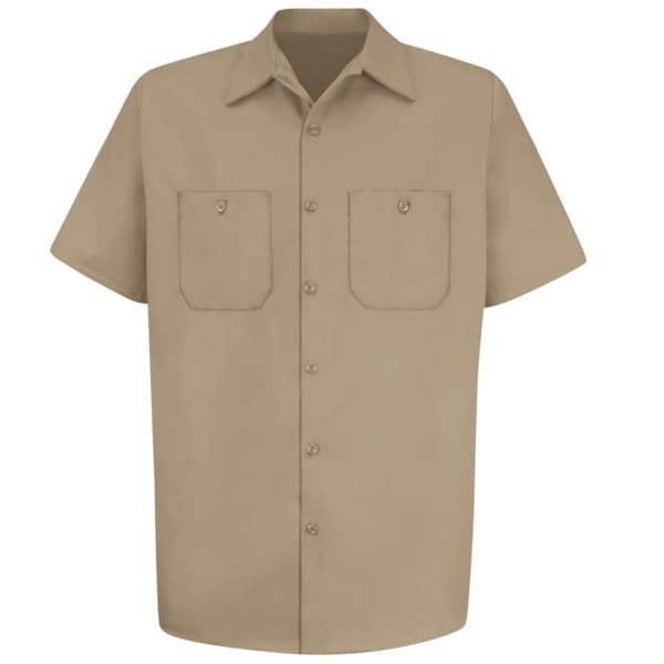 Mns Ss Khaki Dp Cotton Workshirt,S, Gender Men's, Style Work Shirt, Material Cotton, Fabric Weight 6 oz/sq yd, Front Closure Type Buttons, Number of Outside Pockets 2, Fit Classic Fit, Color Tan, Sleeve Type Short, Sleeve Length 18 1/4 in, Size S, Minimum Neck Size 13 5/8 in, Maximum Neck Size 14 1/2 in, Maximum Chest Size 38 in, Minimum Chest Size 34 1/2 in, Length 31 3/4 in, Size-Body Type Regular, Cleaning and Care Instructions Home Wash, Industrial Laundry: Light Soil, Collar Style Two Piece