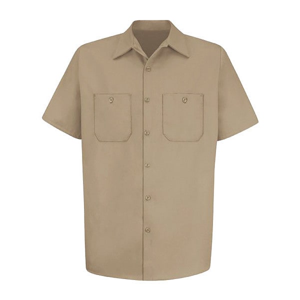 Mns Ss Khaki Dp Cotton Workshirt,XL, Gender Men's, Style Work Shirt, Material Cotton, Fabric Weight 6 oz/sq yd, Front Closure Type Buttons, Number of Outside Pockets 2, Fit Classic Fit, Color Tan, Sleeve Type Short, Sleeve Length 22 1/4 in, Size XL, Minimum Neck Size 16 5/8 in, Maximum Neck Size 17 1/2 in, Maximum Chest Size 50 in, Minimum Chest Size 46 1/2 in, Length 34 in, Size-Body Type Tall, Cleaning and Care Instructions Home Wash, Industrial Laundry: Light Soil, Collar Style Two Piece