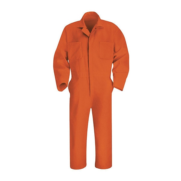Mns Ls Orange Action Back Coverall, L, Cotton/Polyester, Two-Way Brass Zipper