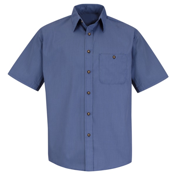 Mns Ss Blue Gray Mini Plaid Shirt,S
