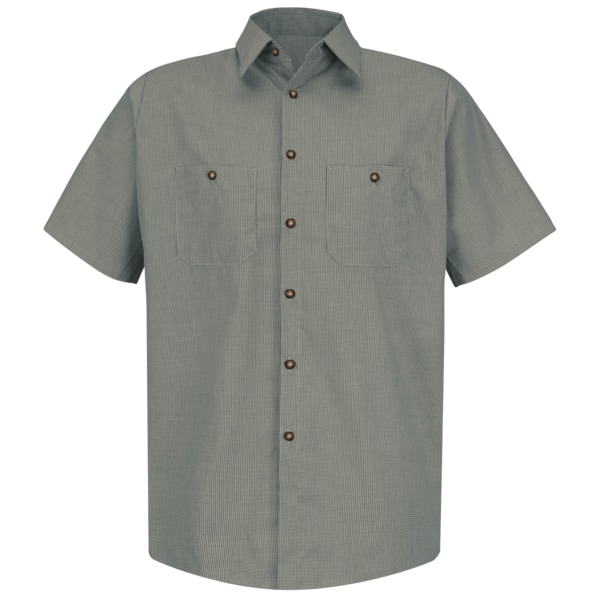 Short Sleeve Microcheck Uniform Shirt, 65% Polyester / 35% Combed Cotton, Button Fronts, S