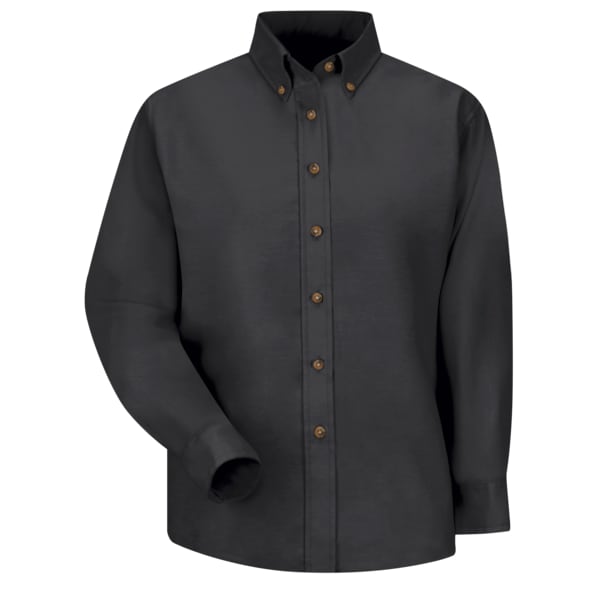 Women's Long Sleeve Work Shirt, Cotton/Polyester, Button Fronts, 0 Pocket(s), Black, S