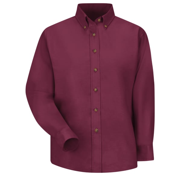 Women's Long Sleeve Work Shirt, Cotton/Polyester, Button Fronts, 0 Pocket(s), Burgundy, M