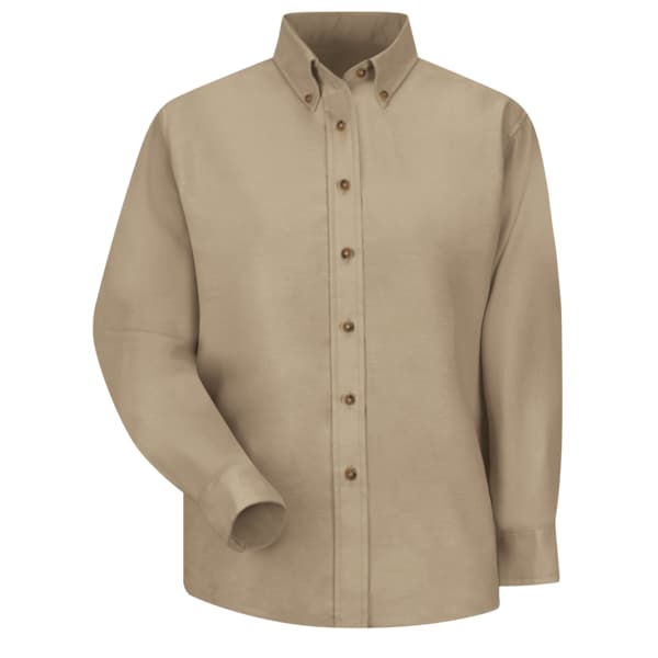 Women's Long Sleeve Work Shirt, Cotton/Polyester, Button Fronts, 0 Pocket(s), Tan, M