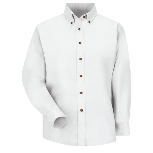 Women's Long Sleeve Work Shirt, Cotton/Polyester, Button Fronts, 0 Pocket(s), White, 2XL (Discontinued)