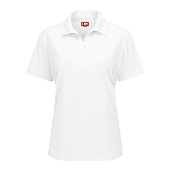 Short Sleeve Polo, Gender Women's, Style Polo, Material Polyester, Fabric Weight 5.3 oz/sq yd, Front Closure Type Buttons, Number of Outside Pockets 0, Fit Relaxed Fit, Color White, Sleeve Type Short, Sleeve Length 7 7/8 in, Size S, Maximum Chest Size 37 in, Minimum Chest Size 35 in, Length Regular, Size-Body Type Regular, Cleaning and Care Instructions Home Wash, Industrial Laundry: Heavy Soil, Industrial Laundry: Light Soil, Collar Style V-Neck