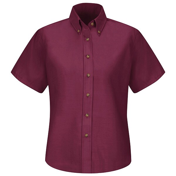 Women's Short Sleeve Work Shirt, Cotton/Polyester, Button Fronts, 0 Pocket(s), Burgundy, 2XL