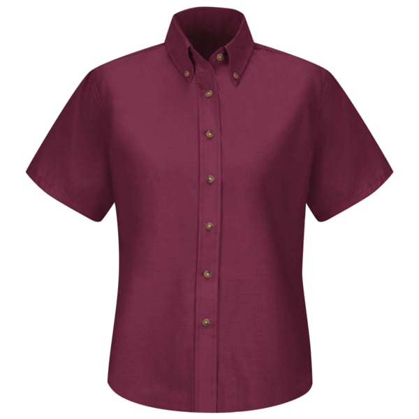 Women's Short Sleeve Work Shirt, Cotton/Polyester, Button Fronts, 0 Pocket(s), Burgundy, S