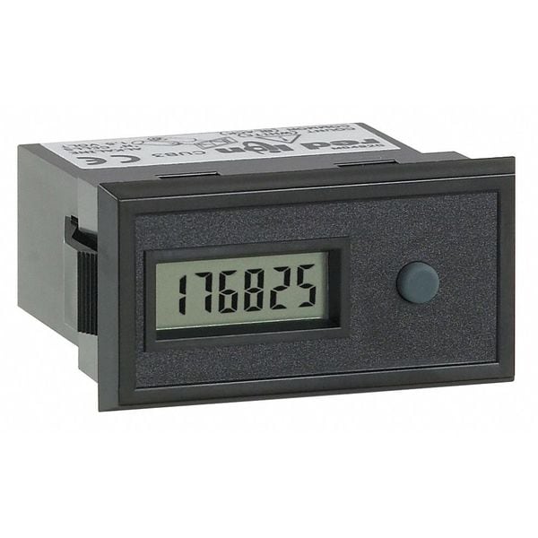Electronic Counter, Number of Digits 6, LCD Display, Character Height 0.2 in, Max. Counts per Second 100, Input Signal 1.5V DC Current Sinking, 30V DC Current Sourcing, Output Rating None, Output None, Mounting Snap-In, Height 1.10 in, Depth 1.72 in, Width 2.09 in, Series CUB3, Scaler No, Preset No, Power Required (2) 3V inN in Style Batteries, Min. On/Off Pulse 5 msec, Prescaling Range 0.00001 to 9.99999, Reset Type Front Panel Push Button, Interface None, Connector Type 12 in Wire Lead