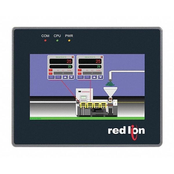 Graphical Touch Panel, TFT Color, Voltage 24V DC, Display 480 x 272 Pixels, 128 MB Internal Data Storage Memory, Port Type 1RS485, 1RS232/RS422/RS485, Width 5.00 in, Height 4.00 in, Depth 1.50 in, For Use With Crimson 3.0 Software, LCD 4.3 in TFT 32K-Color, (3) Front Panel LED Indicators, UL E302106, NEMA 4/IP65 Front Panel, Unit Configuration is Stored In Non-Volatile Flash Memory, Resistive Analog Touchscreen, Includes Operator Interface, Hardware Packet, Terminal Block, Spare Fuse