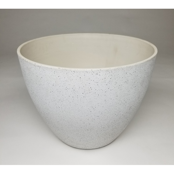Attractive and lightweight planter to make it easier to move plants to safety during winter freezes. Capacity: 10.0 gal. Made from FiberClay (70% finely pulverized clay/earth, 25% recycled polyester resin and 5% non-toxic organic binders); good down to 0o F. Includes rubber push-out plug in bottom of the bowl so planter can be used either indoors or outdoors.